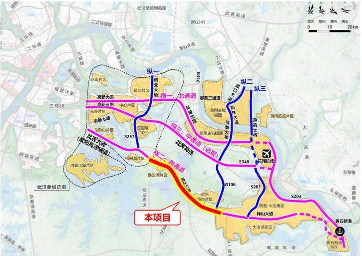 該項(xiàng)目屬于武鄂黃黃“三橫”南通道中的一段,路線(xiàn)全長(zhǎng)27.949 公里,項(xiàng)目總投資約為18億元。項(xiàng)目的實(shí)施將進(jìn)一步加強(qiáng)武鄂黃黃的交通路網(wǎng)建設(shè),有利于加快推動(dòng)武鄂黃黃同城化發(fā)展,對(duì)加快黃石融入武漢都市圈的核心區(qū)具有重要意義。