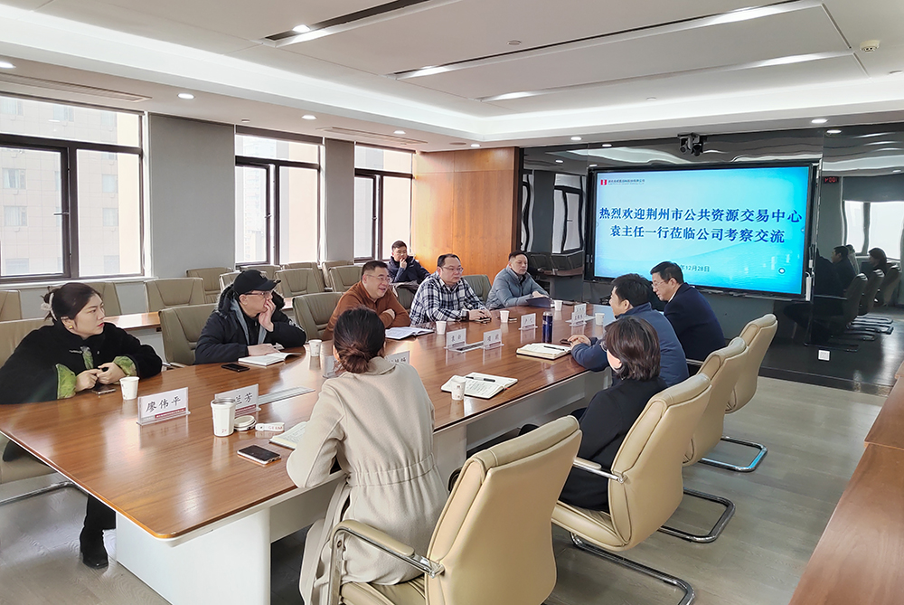 近日,荊州市公共資源交易中心主任袁新一行到成套公司調(diào)研。公司黨委副書記、總經(jīng)理項(xiàng)前與袁新會面交談,公司副總經(jīng)理劉艷旸及相關(guān)部門負(fù)責(zé)人出席會議。