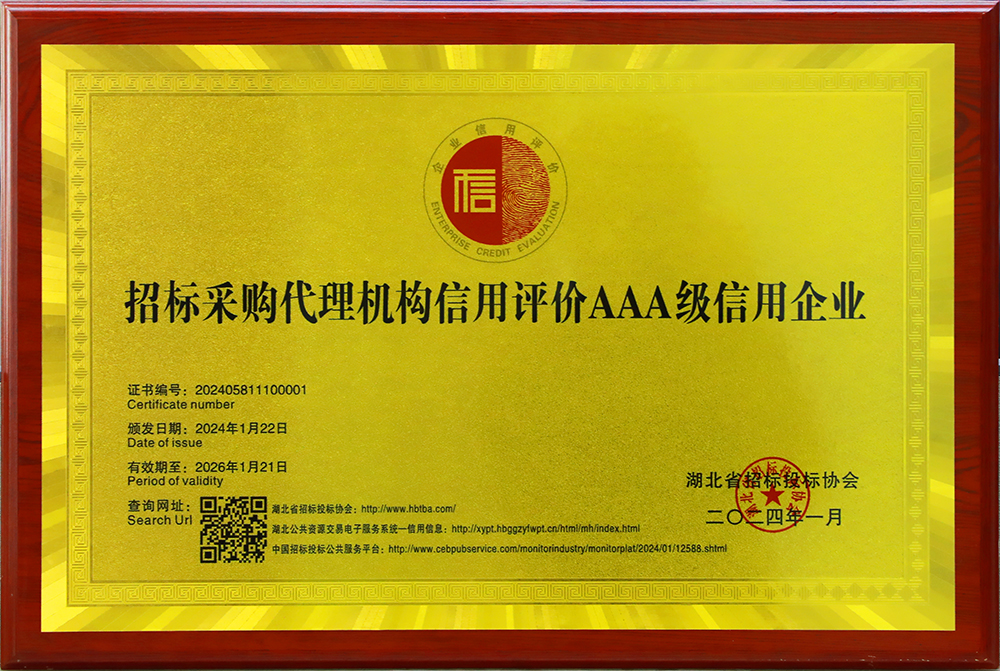 近日,在由湖北省招標(biāo)投標(biāo)協(xié)會(huì)舉辦的第三屆四次理事會(huì)暨表彰大會(huì)上,成套公司獲評(píng)招標(biāo)采購代理機(jī)構(gòu)信用評(píng)價(jià)最高AAA等級(jí),公司20名業(yè)務(wù)骨干獲“招標(biāo)先進(jìn)個(gè)人”榮譽(yù)稱號(hào),進(jìn)一步體現(xiàn)社會(huì)各界對(duì)公司在招標(biāo)采購咨詢服務(wù)領(lǐng)域綜合實(shí)力的高度認(rèn)可。