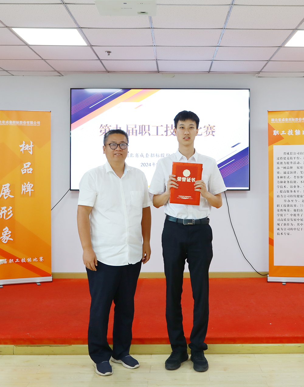 公司總工辦副主任黃向東向獲得三等獎(jiǎng)的選手楊春澤頒獎(jiǎng)