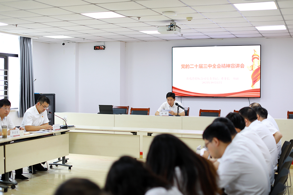 為深入學(xué)習(xí)貫徹黨的二十屆三中全會精神,10月12日,省成套招標(biāo)公司舉辦學(xué)習(xí)宣傳黨的二十屆三中全會精神宣講會。公司黨委書記、董事長項(xiàng)前作宣講報(bào)告,并就深入學(xué)習(xí)貫徹黨的二十屆三中全會精神重點(diǎn)工作作出部署安排。公司領(lǐng)導(dǎo)班子成員,全體中層及以上干部共計(jì)50余人參加此次會議。