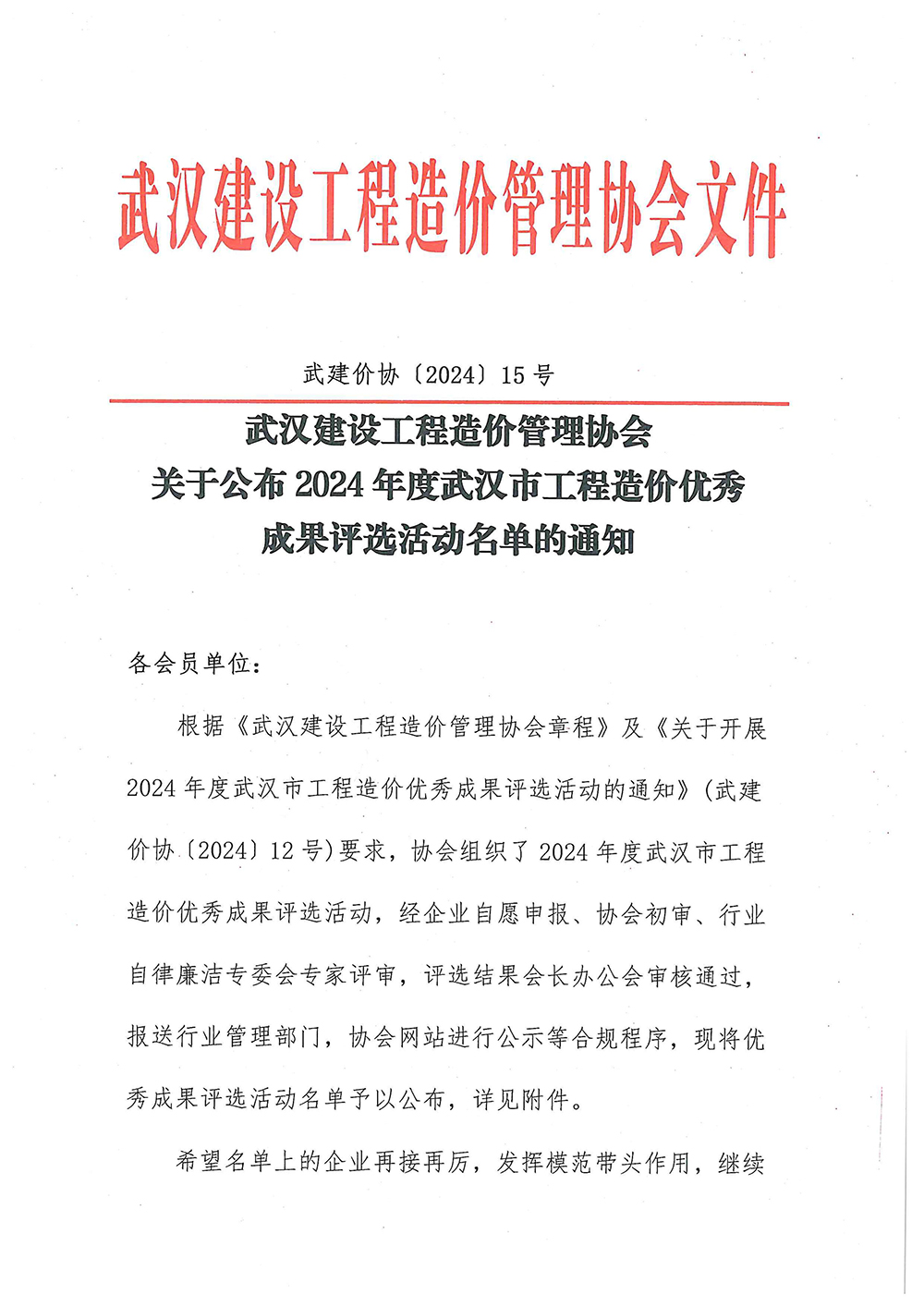 11月27日,武漢建設工程造價管理協(xié)會公布2024年度武漢市工程造價優(yōu)秀成果的評選結(jié)果,省成套招標公司下屬子公司省成套造價公司(下稱“造價公司”)申報的“利川至萬州高速公路湖北段工程竣工結(jié)算審計”與“武漢市軌道交通新港線西延線工程土建工程”兩個項目在評選中脫穎而出,榮獲“2024年武漢市工程造價優(yōu)秀成果獎”的殊榮。此次獲獎,是行業(yè)對造價公司專業(yè)能力和服務水平的充分肯定,也是對公司未來發(fā)展的激勵與鞭策。