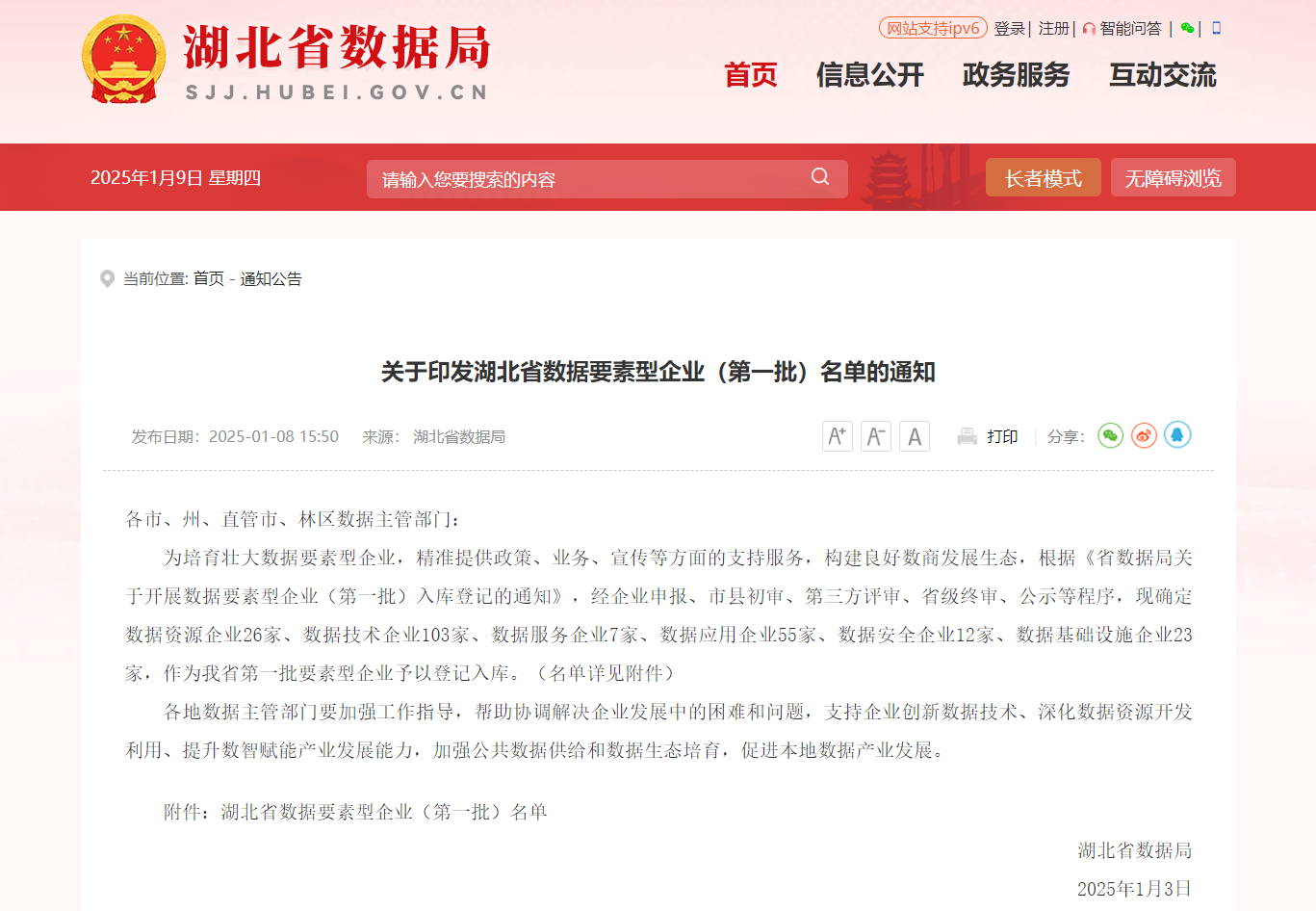 1月8日,湖北省數(shù)據(jù)局發(fā)布湖北省數(shù)據(jù)要素型企業(yè)(第一批)名單,省成套招標(biāo)公司入選湖北省首批登記入庫的“數(shù)據(jù)技術(shù)企業(yè)”和“數(shù)據(jù)應(yīng)用企業(yè)”。