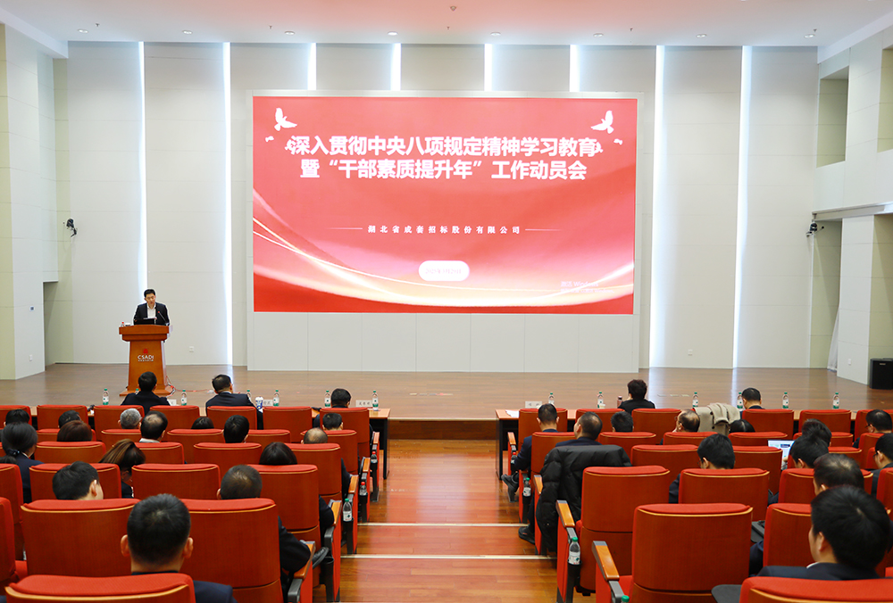 3月29日,省成套招標(biāo)公司召開深入貫徹中央八項(xiàng)規(guī)定精神學(xué)習(xí)教育暨“干部素質(zhì)提升年”工作動(dòng)員會(huì)。會(huì)議貫徹落實(shí)黨中央決策部署和省委工作要求,根據(jù)中南建院黨委有關(guān)工作安排,對(duì)深入貫徹中央八項(xiàng)規(guī)定精神學(xué)習(xí)教育工作進(jìn)行再部署,同時(shí)對(duì)公司“干部素質(zhì)提升年”專項(xiàng)工作進(jìn)行再動(dòng)員。