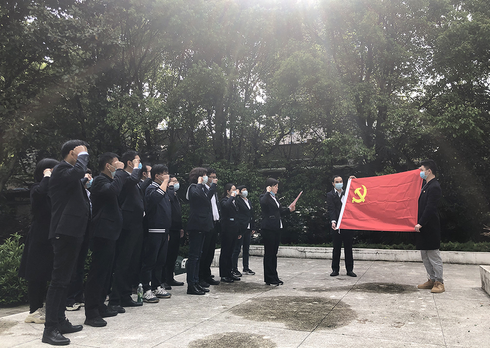 初春的烈士陵園莊嚴(yán)肅穆。黨員們首先參觀了葉挺獨(dú)立團(tuán)武昌紀(jì)念館,通過一件件展品,一張張圖片,回望崢嶸歲月。接著大家來到長眠著191位在北伐軍攻打武昌城戰(zhàn)斗中壯烈犧牲的烈士公墓前,莊嚴(yán)肅立敬獻(xiàn)鮮花并集體向革命烈士默哀,以此表達(dá)對他們的無限緬懷之情。最后,由第一黨支部書記領(lǐng)誓,全體黨員重溫了入黨誓詞。