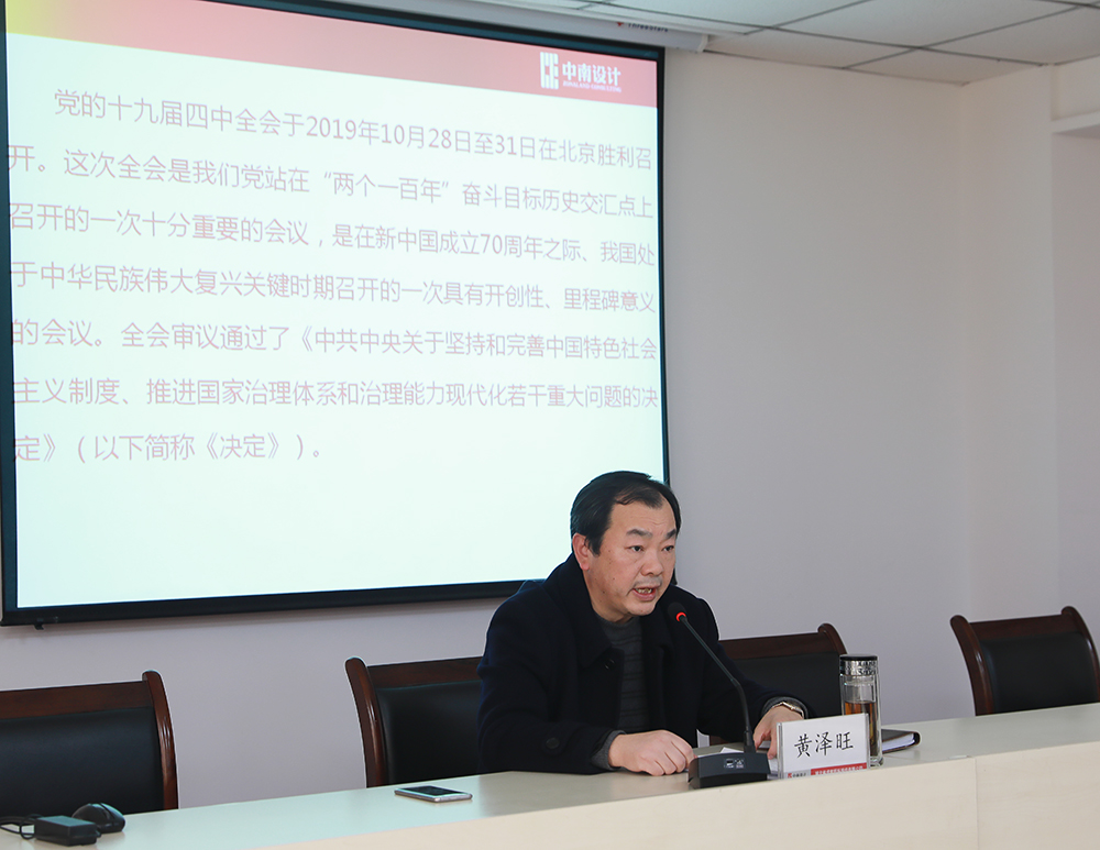 12月13日下午,省成套招標公司舉辦黨的十九屆四中全會精神宣傳報告會。中南設(shè)計集團宣講團成員、省成套招標公司黨委書記、董事長黃澤旺作宣講報告。