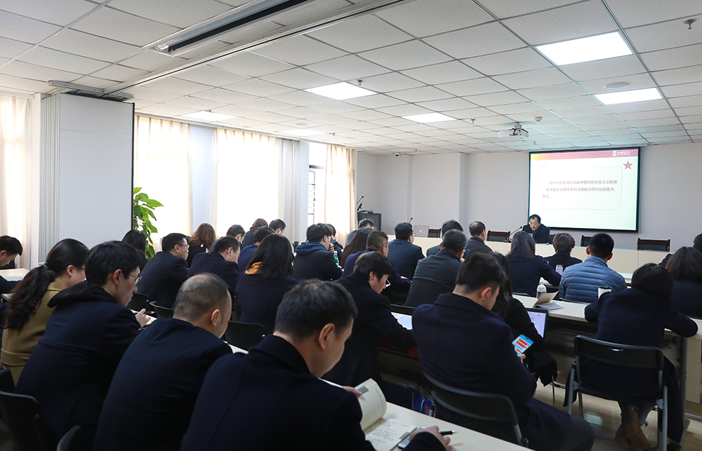 黃澤旺在報告中深刻闡釋了堅持和完善中國特色社會主義制度、推進國家治理體系和治理能力現(xiàn)代化的重大意義。全面分析了中國特色社會主義制度和國家治理體系的顯著優(yōu)勢,系統(tǒng)解讀了全會《決定》提出的總體要求、總體目標和重點任務(wù),深化了公司全員對全會精神的理解。